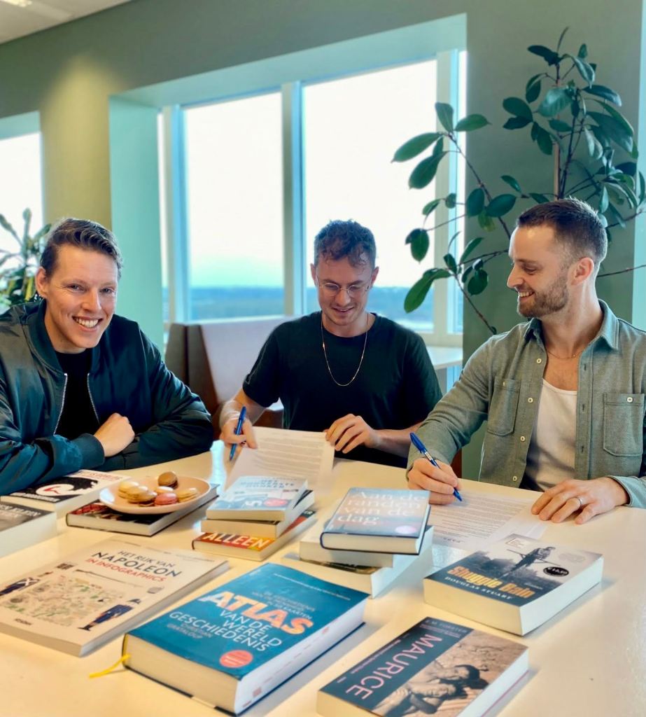 Hier tekenen we het contract bij Uitgeverij Nieuw Amsterdam: